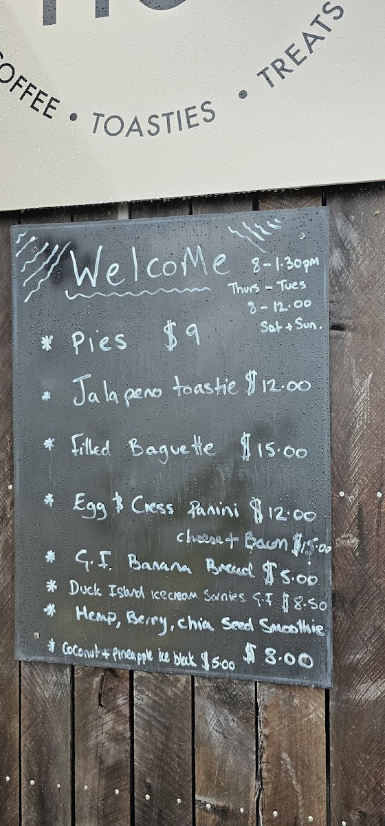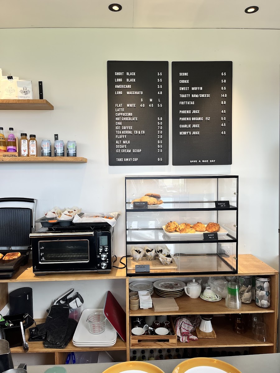 The menu at the hut rangitahi features a selection suited for breakfast, coffee breaks, and light meals. Visitors can expect a variety of coffee options including espresso-based drinks such as flat white and espresso, alongside an assortment of pastries and baked goods. The food offerings include items like scones, with cheese and jalapeño varieties noted, as well as savory pies.